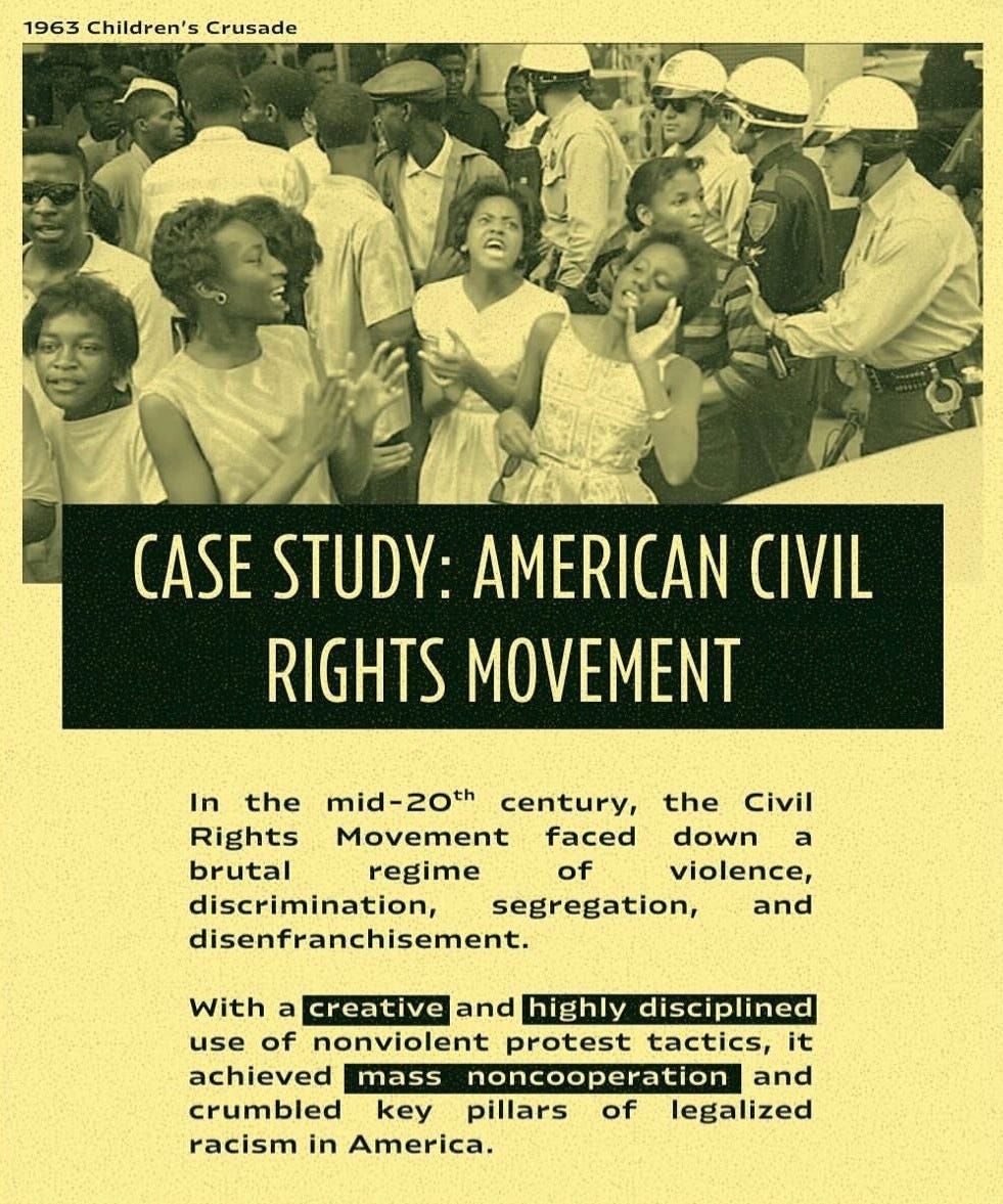 When protests are done correctly, they are tactical, strategic, and effective. Research has actually shown that nonviolent movements are twice as likely to succeed as armed conflicts. There’s a lot of theory behind methods of nonviolent resistance. Let’s get into it a bit: