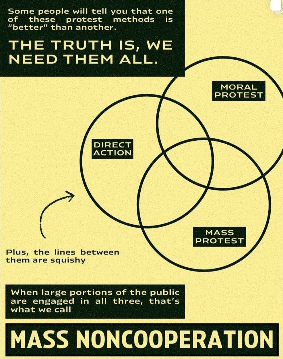 An effective movement needs to use ALL of these strategies. But everyone doesn't have to do everything. Participate when and how you are able!